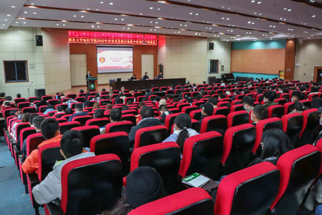 11月26日下午,学校2020年度党员发展对象集中培训班开班典礼在知远楼弘德厅举行。校党委书记彭德忠出席典礼并讲话。各党总支书记、副书记,直属党支部书记,相关职能部门负责人和全体党员发展对象学生参加典礼。开班典礼由副校长黄智凌主持。