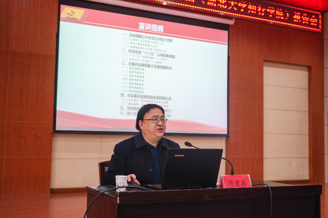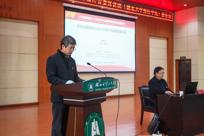 湖北省委讲师团专家邓宏兵教授莅临学校宣讲党的十九届五中全会精神