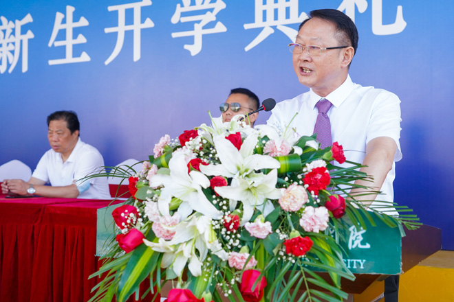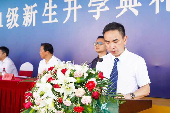 校长卜诗桢发表了热情洋溢的讲话。他首先代表学校向2021级新同学表示热烈的欢迎,向同学们实现人生新的跨越,开启人生新的航程表示热烈的祝贺!