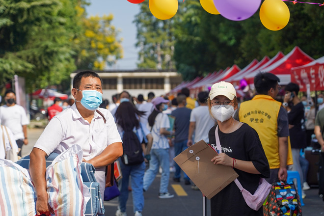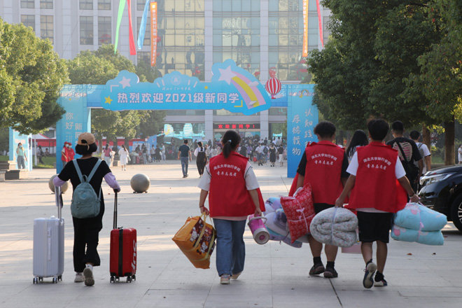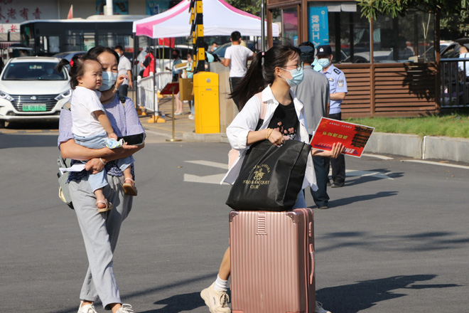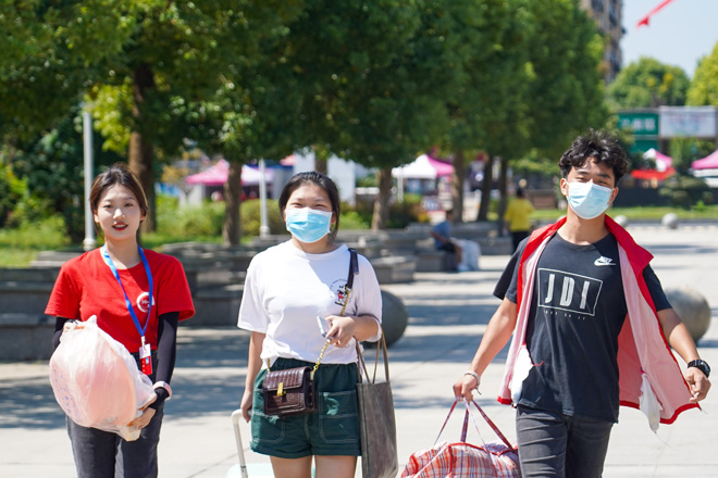 出示核酸检测报告、扫码、测温……师生热情服务,校门口严格查验,校园交通疏导有序,疫情防控措施到位,整个报到现场秩序井然。各职能部门和各学院工作人员盯靠一线,高效配合,协作有序,学生志愿者们引导每一位报到新同学到各自学院办理入学手续,帮忙搬运行李,并引导家长在休息区等候。
