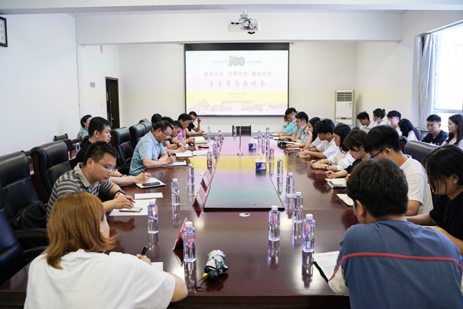 为落实党史学习教育“我为群众办实事”实践活动要求,更好服务学生成长成才。6月23日上午,学校“学生事务面对面”交流活动在知言楼三楼会议室举行。校长卜诗桢与学生面对面共话学校发展。党委副书记高志宏,副校长黄智凌,党委委员、党政办公室主任刘张虎和教务处、学工处、后勤保障处、保卫处等部门负责人参加座谈会。