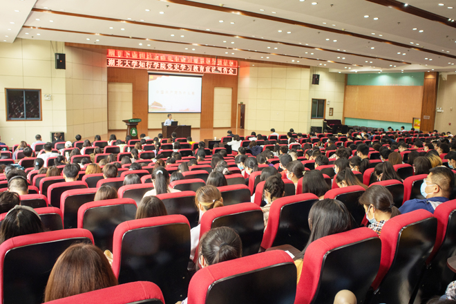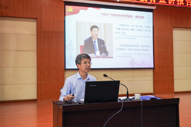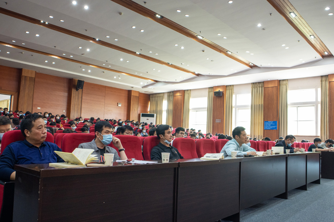 5月19日下午,校党委书记彭德忠在学术报告厅201为全校师生党员作党史学习教育专题辅导报告。校长卜诗桢主持报告会。全体教职工党员和学生党员、入党积极分子代表参加学习。