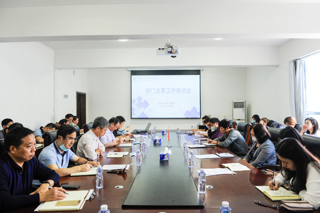 5月12日下午,学校在知言楼三楼会议室召开2021年春季学期重点工作推进会。校长卜诗桢主持会议。全体校领导和各单位党政主要负责人参加会议。
