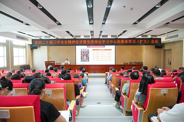 9月20日下午,学校在知远楼202弘智厅举行学习宣传贯彻党的二十届三中全会精神专题读书班辅导报告会暨党委理论学习中心组集体学习(扩大)会议。马克思主义学院副教授胡正燕作专题辅导。全体校领导,全体中层干部,各基层党组织书记、支委和学生党员代表参加学习。党委副书记黄智凌主持报告会。