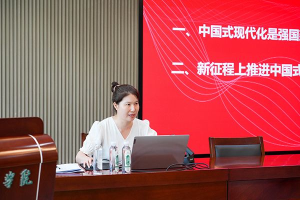 报告中,胡正燕以“新征程上推进中国式现代化的时代新篇”为题,从“中国式现代化是强国建设、民族复兴的唯一正确道路”“新征程上推进中国式现代化的时代新篇”两个方面,对全会精神作了系统阐述和深刻讲解。讲解中,她重点从人口规模巨大、全体人民共同富裕、物质文明和精神文明相协调、人与自然和谐共生、走和平发展道路等五个方面,阐释了中国式现代化的中国特色,指出中国式现代化是中国共产党领导人民长期探索和实践的重大成果,是强国建设、民族复兴的康庄大道,并对党的二十届三中全会关于进一步全面深化改革的背景意义、总体目标、重大举措等进行了专题解读辅导。