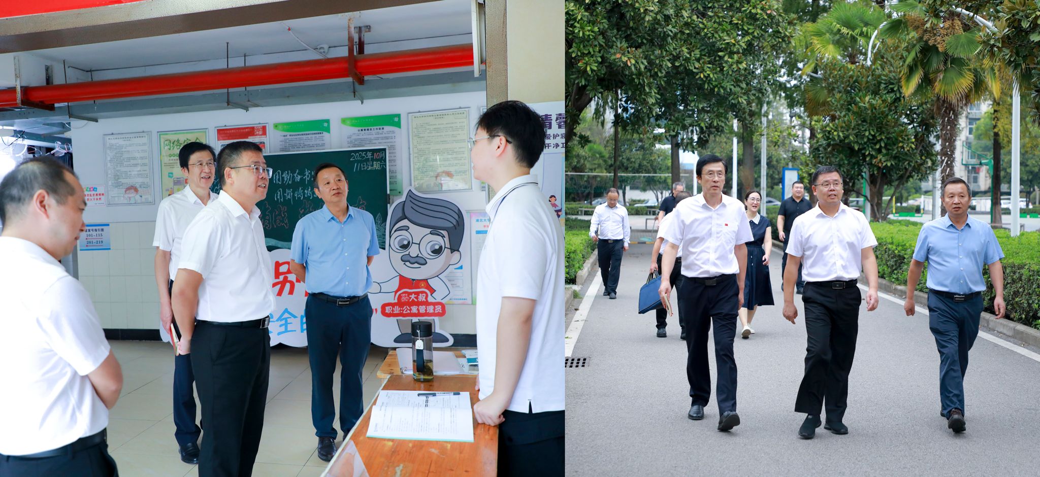吴明新一行深入学生宿舍、图书馆、教学楼、校园食堂等场所,全面调研了解学院办学情况,前往巡察组和学院纪检审计处工作场所,看望巡察和纪检工作人员,与他们亲切交谈,了解日常工作开展情况。